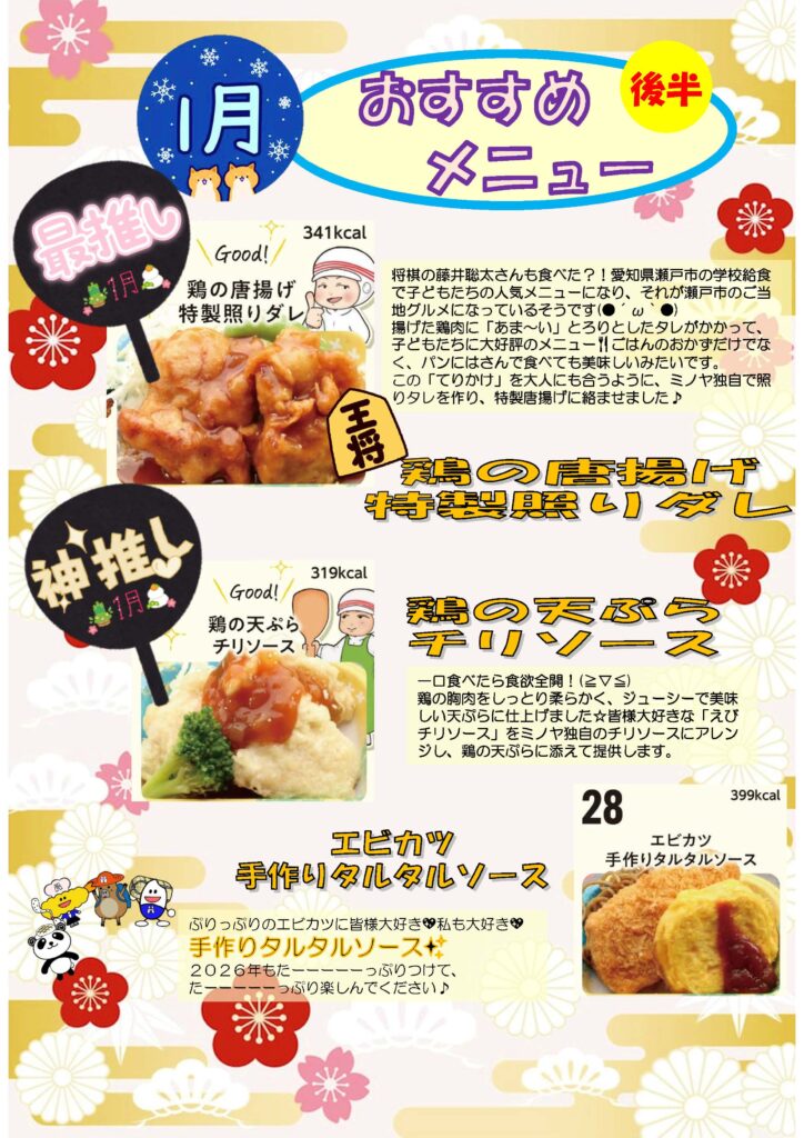1月後半のおすすめメニューです。