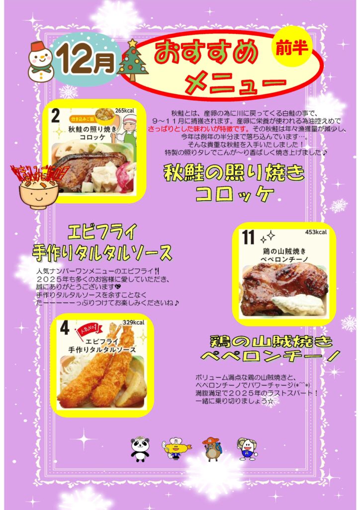 12月前半おすすめメニューです。